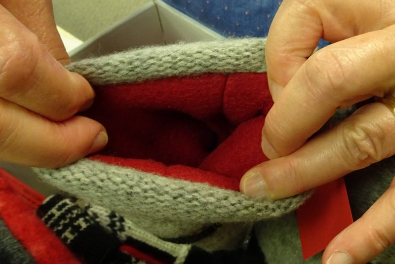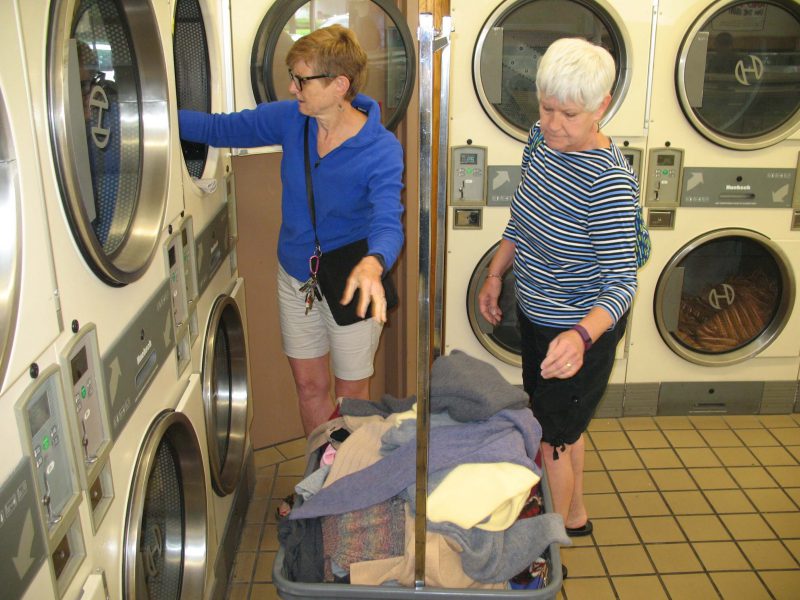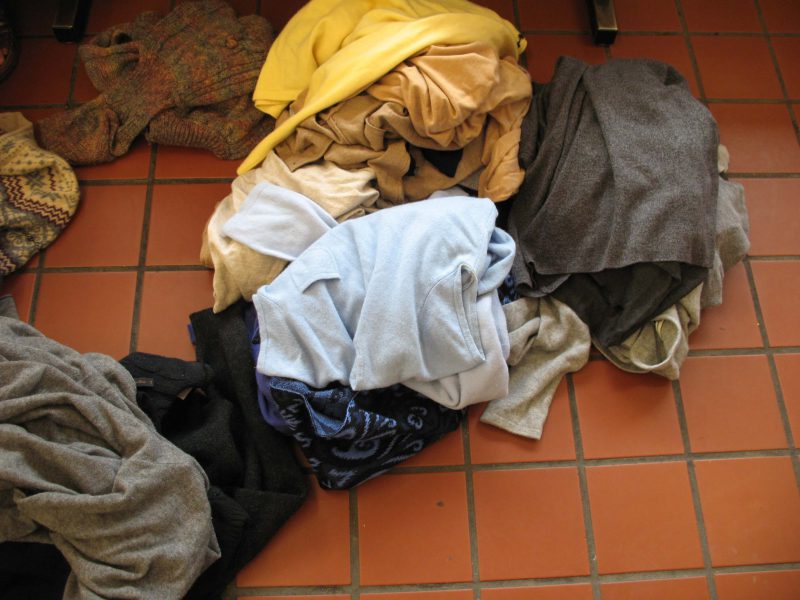 Volunteers launder the sweaters in hot water and dry them in hot dryers, causing the sweaters to shrink or “felt.”